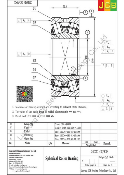 24020 CC/W33 of spherical roller bearing.pdf
